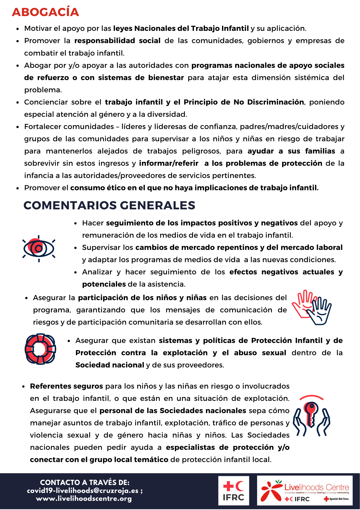 - Para reducir el impacto socioeconómico de esta crisis es imprescindible poner en marcha medidas específicas de mitigación, protección y recuperación de los Medios de Vida que es uno de los factores clave para la resiliencia de las personas, hogares y comunidades.