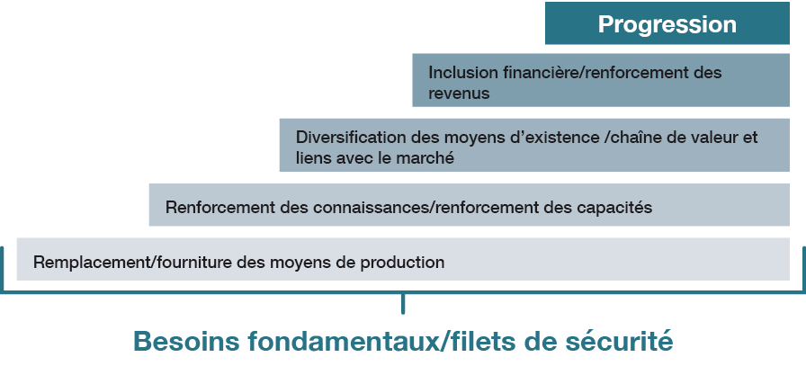Ce guide technique n'inclut pas la conception de programme, à des fins de conception, de surveillance et d'évaluation. Des ressources en la matière sont disponibles dans la Boîte à outils du centre de moyens d'existence. Afin de soutenir l'utilisation de la méthodologie HES et le renforcement des capacités de la CRCR, le centre de moyens d'existence de la FICR a développé une formation en matière d'Évaluation des moyens d'existence d'urgence (ERLA) destinée à préparer les participants à mener des évaluations de besoins de sécurité économique suite à une catastrophe.